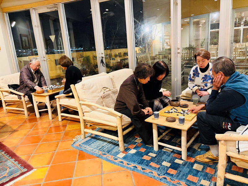 初めての囲碁(1月26日) 分からないからこそ?!「囲碁」の面白さのど真ん中を感じて、ビギナー陣は月に2回の「初めての囲碁」を楽しんでおられます。「次、ここに置こうかな」と心の声がもれ出る場面には、リーダーの中井さんが思わず苦笑。それでも、長年囲碁に魅了されてきた中井さんは、「この面白さを少しでも多くの方に味わって欲しい!」とこの「初めての囲碁」の場を創って下さっています。中井さん、ありがとうございます!これからもぐいぐい引っ張って下さいませ♪ (小柳 和美)