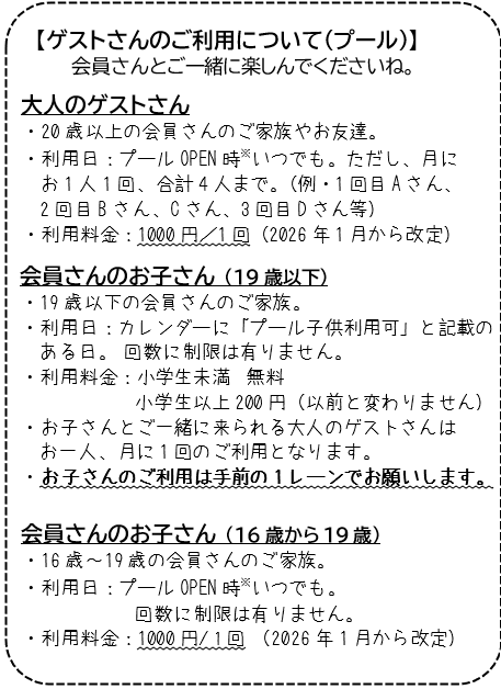 ・プール・更衣室のご利用時間、ゲストさんについて